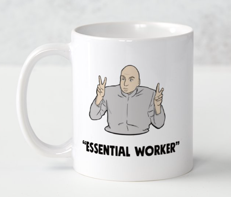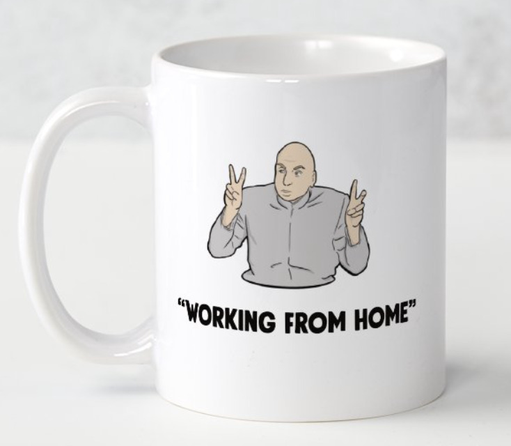 Our hilarious Dr. Evil ‘Air Quotes’ Mug is a play on the popular meme where Dr Evil is shown air quoting hilarious statements like “Working From Home” (As if anyone is actually ‘working’ from home..). Customise this mug with any phrase you want!